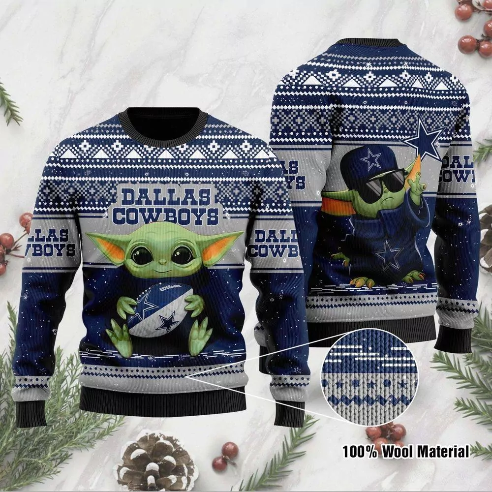 Baby Yoda Dallas Cowboys Nfl Christmas Awesome 3d ugly sweatshirt