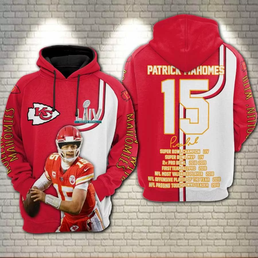 Kansas City Chiefs Patrick Mahomes Super Bowl Champions 54 Printing Pullover Th1284 3d