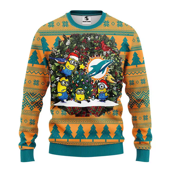 Design01: Miami Dolphins fan gift Christmas 3d ugly sweatshirt;Design02: Miami Dolphins Funny Grinch Christmas 3d ugly sweatshirt;Design03: Miami Dolphins Groot Hug Christmas 3d ugly sweatshirt;Design04: Miami Dolphins Minion Christmas 3d ugly sweatshirt;Design05: Miami Dolphins HoHoHo Mickey Christmas 3d ugly sweatshirt